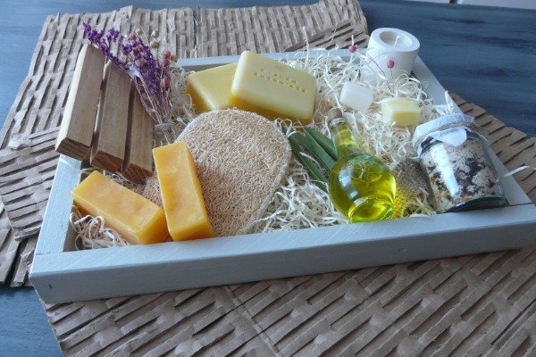 2 jabones de 90 gr. cada uno + 2 jabones de 40 gr. cada uno + 2 jaboncitos de 20 gr. cada uno.