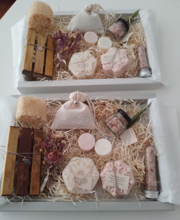 2 jabones de 100 gr cada uno + 2 jaboncitos de 25 gr cada uno.